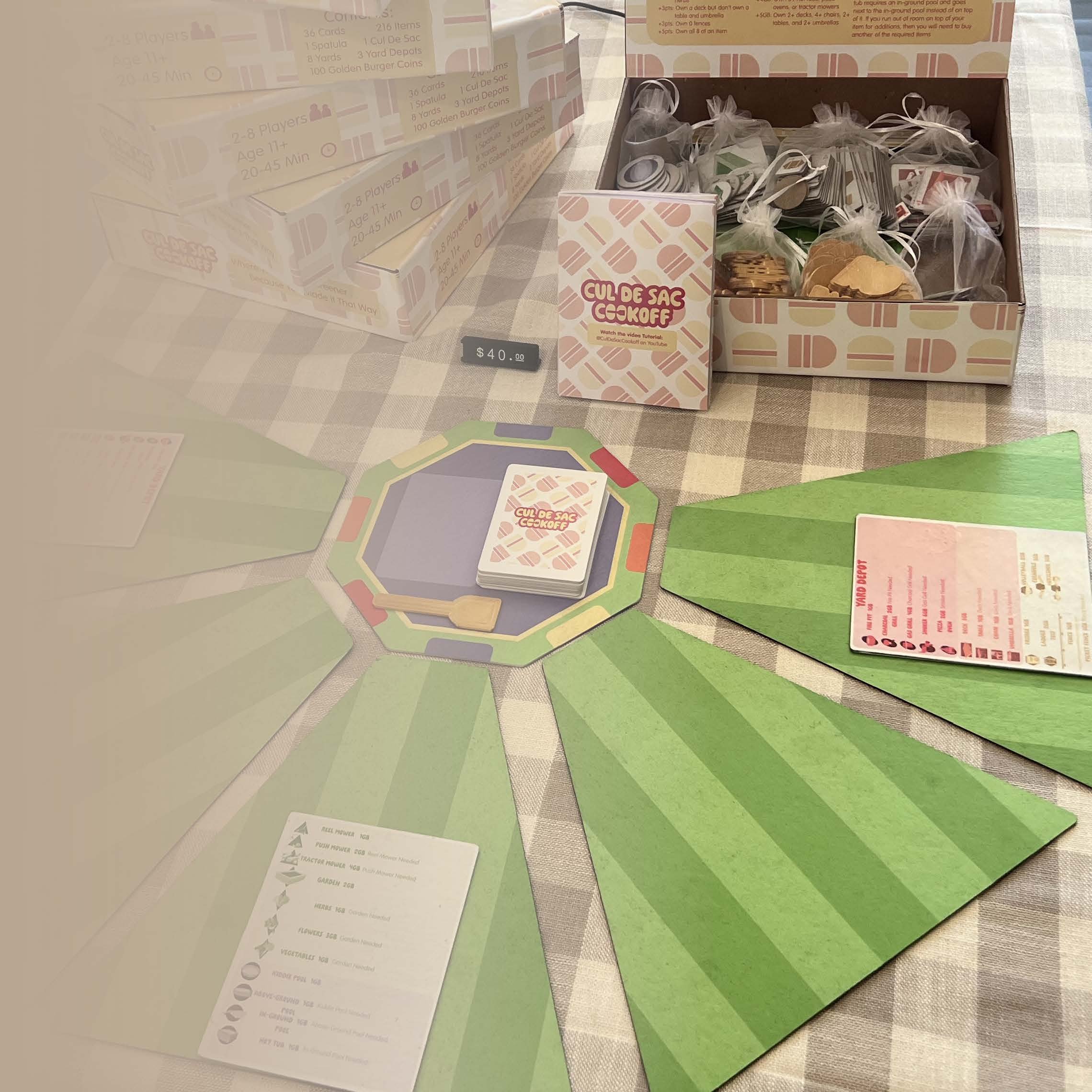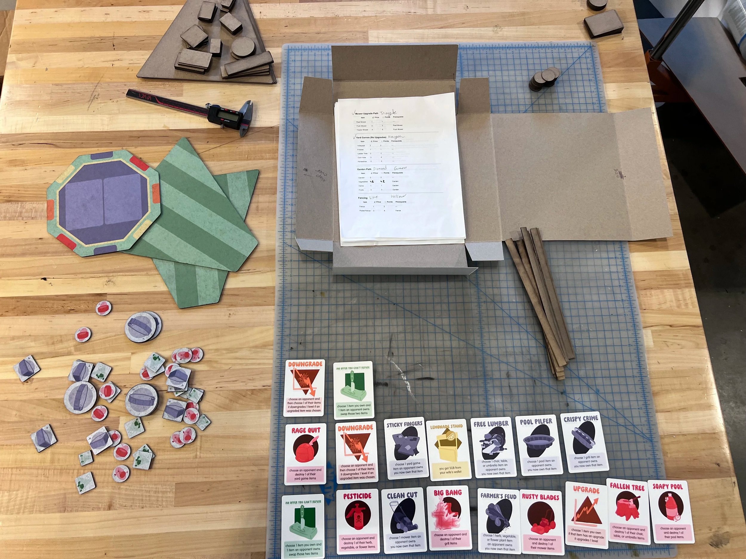 The deck of cards for each game was outsourced for printing so we could focus on cutting and printing the pieces, board, and box. I still did the graphics before they were sent out. We also were in a time crunch to get them back with time to double check the print quality.